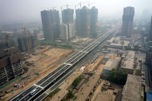 | 和平路是石家莊市北翼東西向的一條城市主干道,是石家莊市總體規(guī)劃中的“四橫”之一。和平路跨線(xiàn)橋(紅軍街——棉一立交橋)工程始于紅軍大街,跨越中華大街、九中街、北新街、車(chē)輛廠前街、京廣線(xiàn)、勝利大街、平安大街、長(zhǎng)征街后與棉一立交橋連接,高架橋全長(zhǎng)3616米。 由我公司承建的一標(biāo)段西起紅軍大街,東止于北新街東220米,總長(zhǎng)1621.267m,由高架橋梁、道路、排水管道、道路照明等工程項(xiàng)目組成,是全線(xiàn)三個(gè)標(biāo)段中工程量最大的標(biāo)段。2009年4月30日主橋主路正式通車(chē),比預(yù)定工期提前了10個(gè)月。 “和平路跨線(xiàn)橋工程的建成通車(chē),標(biāo)志著省會(huì)城市基礎(chǔ)設(shè)施建設(shè)翻開(kāi)嶄新的一頁(yè),對(duì)完善市區(qū)路網(wǎng)結(jié)構(gòu)和改善市民出行環(huán)境、進(jìn)一步改善城市面貌意義重大!---燕趙晚報(bào) 2009年5月1日 頭版
